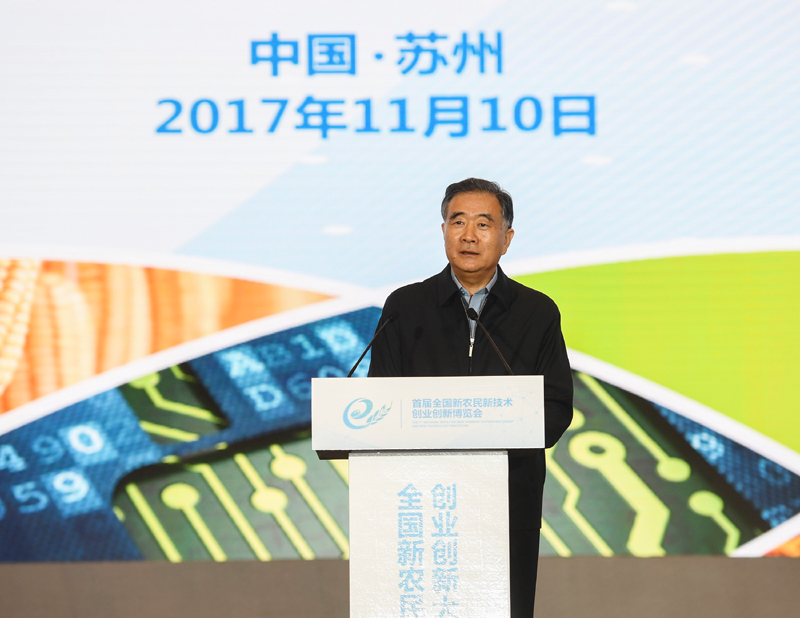 11月10日,首届新农民新技术创业创新大会在江苏省苏州市召开,中共中央政治局常委、国务院副总理汪洋出席并讲话。新华社记者 季春鹏 摄