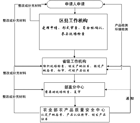 办理环节:申请人通过区农委办公室提交申请材料,经办人在收到申请人申请材料5日内完成受理。区农委在受理之日起10个工作日内完成对有关材料的审核工作,符合要求的,组织有关人员对产地环境、区域范围、生产规模、质量控制措施、生产计划等进行现场检查。现场检查不符合要求的,书面通知申请人。申请材料初审符合要求的,区农委将推荐意见和有关材料上报市农委。