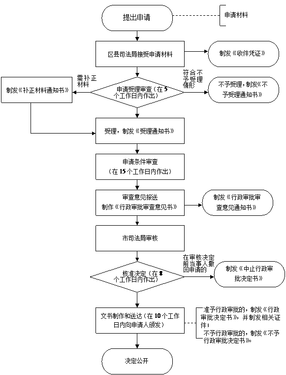 (1)区司法局行政审批工作流程:
